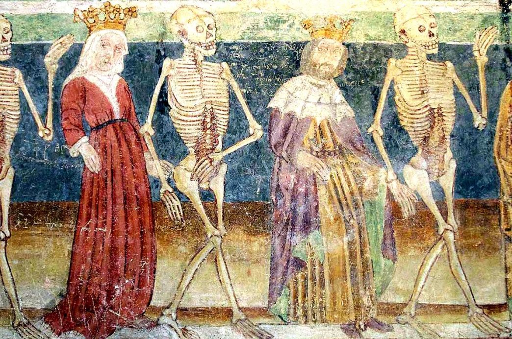 En el mundo artístico, entre pintura y danzas podríamos destacar la aparición de los tópicos siniestros que hacen referencia a la muerte. Por esto no es de extrañar que aparezcan obras artísticas en las que aparezcan calaveras y esqueletos danzando que acogen a todos, desde el monarca hasta el anciano pasando por el bebé recién nacido. También, sabiendo esto en el norte de la Península Ibérica, en las regiones que hoy conforman País Vasco y Navarra, se produjeron las llamadas Danzas Macabras o Danzas de la Muerte que simbolizaban el camino que todos recorreríamos en tiempos de peste.