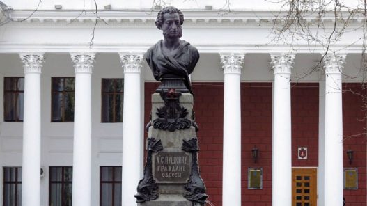 Odessa è un simbolo di riconciliazione, di pace, di gioia di vivere. Eppure caro Puskin, vieni a vedere cosa stanno facendo i tuoi discendenti. Passeggiamo un po’ insieme nei giardini che danno verso il mare, fino alla famosa scalinata di Potemkin, tanto ridicolizzata in Italia da filmetti per il popolo. Passeggiamo un po’ insieme per Odessa. La tua statua che ci veglia quanto durerà? Si capisce c’è la guerra. Ma i tuoi versi sono più profondi perché viventi nell’intimo dei tuoi lettori. La poesia è immarcescibile, come diceva Pasolini, inconsumabile.
