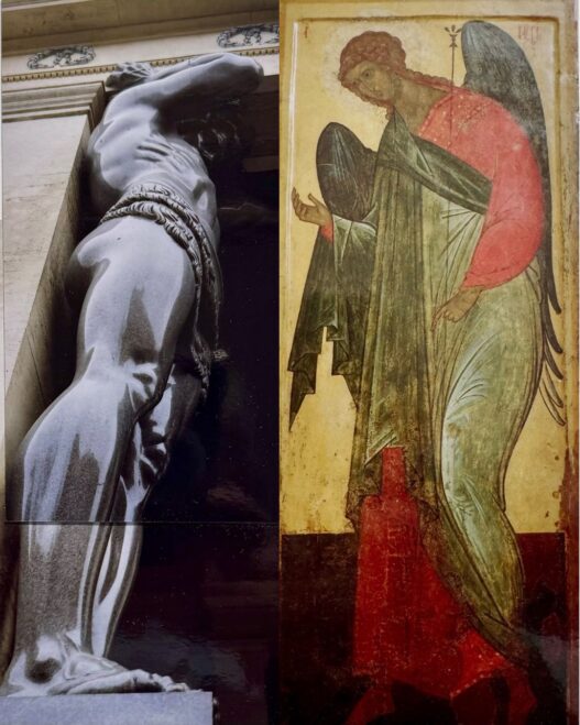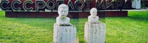 L’Unione Sovietica, nata nel dicembre 1922 dal bolscevismo (NB: Lenin ne fu il primo presidente) e smarrita nelle mostruosità dello stalinismo (NB: scomparsa di Stalin nel marzo 1953), corrispondeva a un progetto prometeico. La sua estetica ne è l’espressione, come la statua di Gagarin a Mosca in cima a una colonna di titanio alta più di 40 metri.