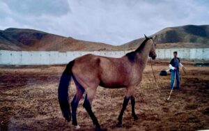 L’Akhal Téké ha conservato la sua natura libera e può diventare solo un compagno; bisogna sapere come scendere da cavallo sui pendii rocciosi e guidarlo con le briglie; poi appoggia la testa sulla tua spalla, non senti nemmeno il suo peso e la fiducia è totale. Il risultato è un’incredibile sensazione di potenza e appagamento, che si trasforma nella libertà assoluta.