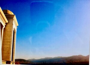 Ashgabat (“città dell’amore”: “eshq” (عشق), “amore”, e ‘âbâd’ (آباد), “città”) è oggi una città molto reale con il suo milione di abitanti. Fondata dai russi nel XIX secolo, situata in un’oasi ai piedi dei monti Köpetdag che segnano il confine con l’Iran e attraversata dal canale del Karakum, è anch’essa costruita in marmo. Un insieme di edifici, palazzi e fontane che si estendono per chilometri in un paese desertico, istituti, musei ed edifici residenziali emergono dal deserto. Predomina uno stile “orientale moderno”, con cupole dorate che si ritrovano in altre città dell’Asia centrale, come Astana in Kazakistan. La scoperta – per chi riesce ad accedere a questo paese ancora molto chiuso – è uno shock estetico che non può non impressionare. La realtà è così straordinaria che ci si ritrova mentalmente trasportati in un mondo surreale.