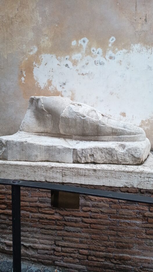 Il Pie’ di Marmo, oggi visibile all’incrocio tra via Santo Stefano del Cacco e via del Pie’ di Marmo, è quel che rimane di una statua monumentale, forse raffigurante Iside stessa o Serapide: un segno tangibile della dea che continua a camminare nei vicoli del centro storico.